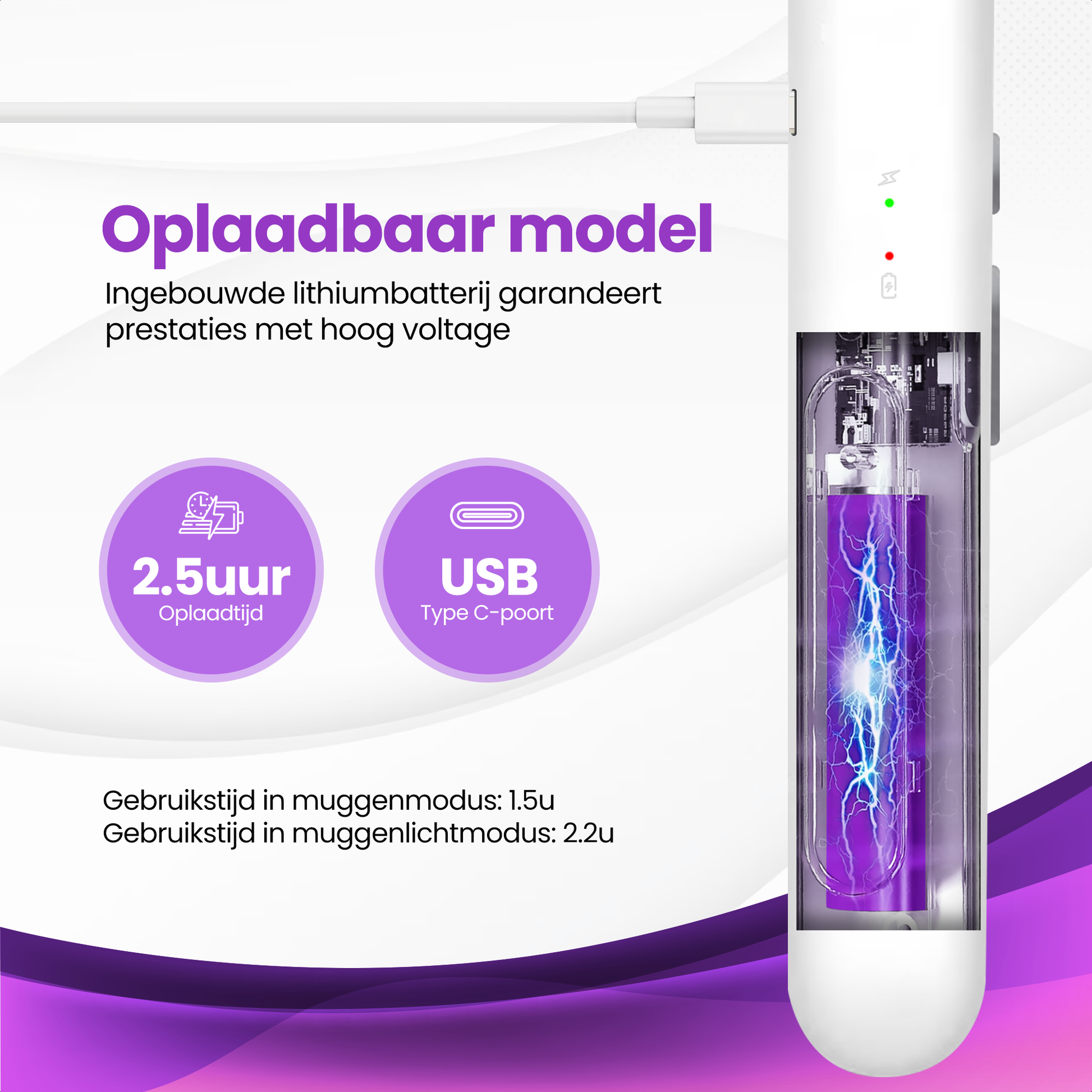 Ben je die eindeloze strijd tegen zoemende muggen en irritante vliegen elke zomer ook zat? Je kunt niet meer rustig eten, koken of slapen! Daarnaast lijkt het steeds moeilijker te worden om deze insecten te vangen. In deze strijd is de elektrische vliegenmepper van TTD jouw nieuwe wapen! Dit is niet zomaar een vliegenmepper ─ het is een geavanceerd apparaat dat gebruik maakt van slimme technologie om jouw leefomgeving te bevrijden van vliegend ongedierte. Dankzij zijn multifunctionele ontwerp combineert het de effectiviteit van een traditionele vliegenmepper met de innovatieve kracht van een UV-muggenlamp. Zo biedt het zowel een actieve als een passieve bescherming tegen muggen en vliegen. Ook is hij oplaadbaar zodat je geen gedoe meer krijgt met batterijen, en kan je hem opvouwen, draaien en ophangen voor maximale flexibiliteit!