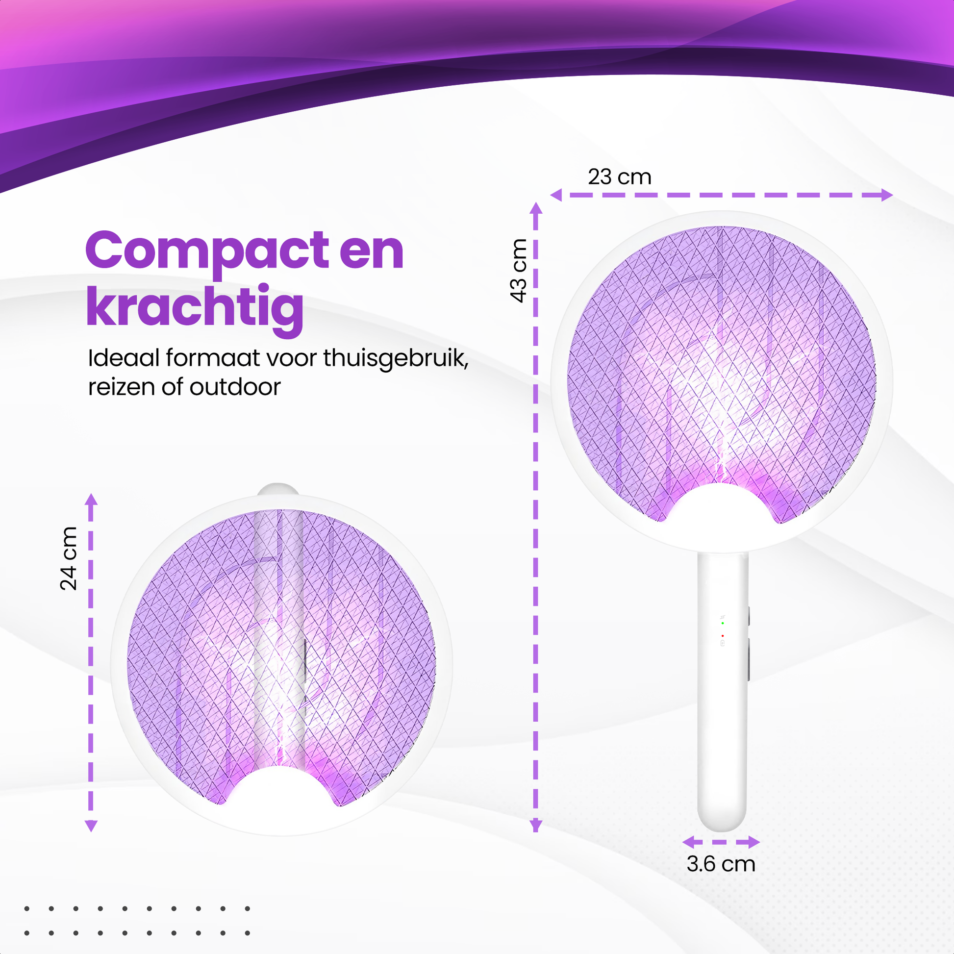 De TTD elektrische vliegenmepper biedt meer dan alleen het gemak van een draadloze vliegenmepper: het is ook een efficiënte muggenlamp. Dit multifunctionele apparaat gebruikt UV-licht om muggen en andere vliegende insecten aan te trekken, waarna ze meteen gedood worden zodra ze het krachtige elektrische net aanraken. Zo biedt het apparaat zowel actieve bescherming met de mepperfunctie als passieve bescherming door als muggenlamp te functioneren, waardoor je leefomgeving het hele jaar door vrij blijft van vliegen en muggen. Ook is de elektrische vliegenmepper makkelijk op te hangen en kan je hem draaien zodat je je muggenlamp altijd perfect kan positioneren!