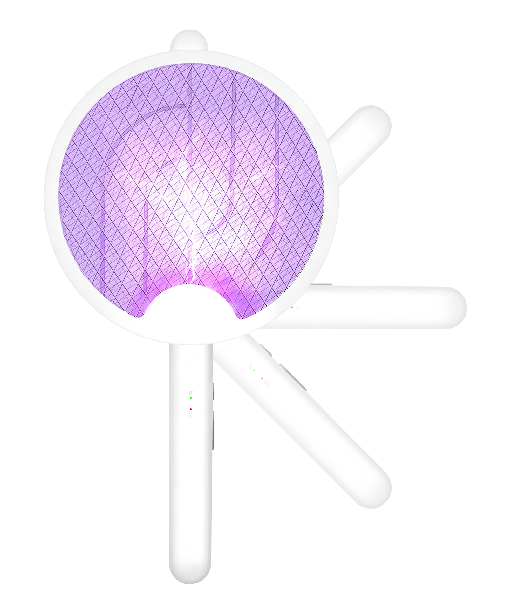 - UV-Licht: de ingebouwde UV-lichtfunctie trekt muggen automatisch aan, waardoor je zelfs niet hoeft te zwaaien. Zet de vliegenmepper in het station en zet hem aan. Op deze manier werkt hij ook als muggenlamp! Perfect voor nachten waarop je ongestoord wilt blijven.