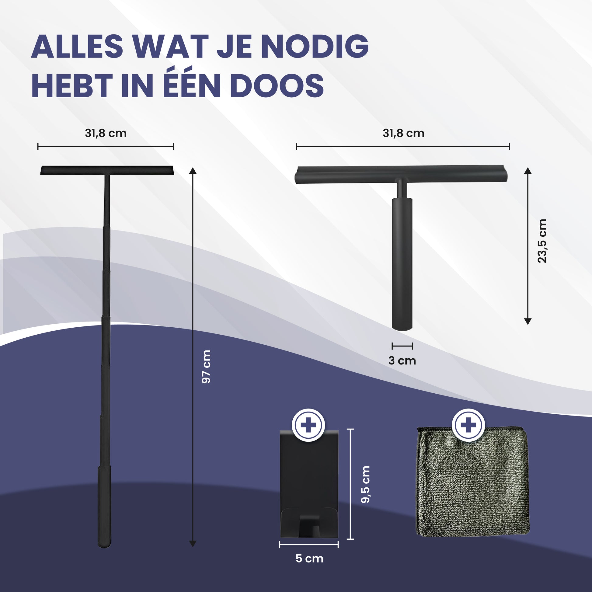 Niets is vervelender dan na het schoonmaken nog strepen, kalk of druppels te zien. Met het siliconen wisserblad en de bijgeleverde microvezeldoek gaat u voor een spiegelend effect, zonder extra inspanning. Of u nu uw douchewand, ramen of vloer aanpakt: één vloeiende beweging volstaat voor een glanzend en hygiënisch oppervlak.