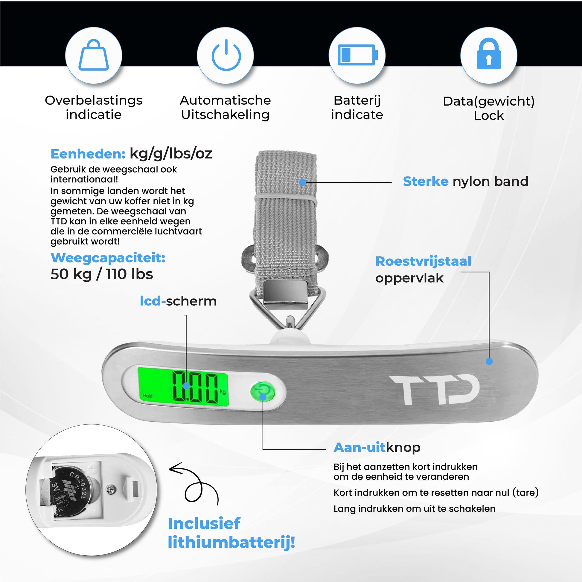 Alle eigenschappen van de bagageweger van TTD op een rij: